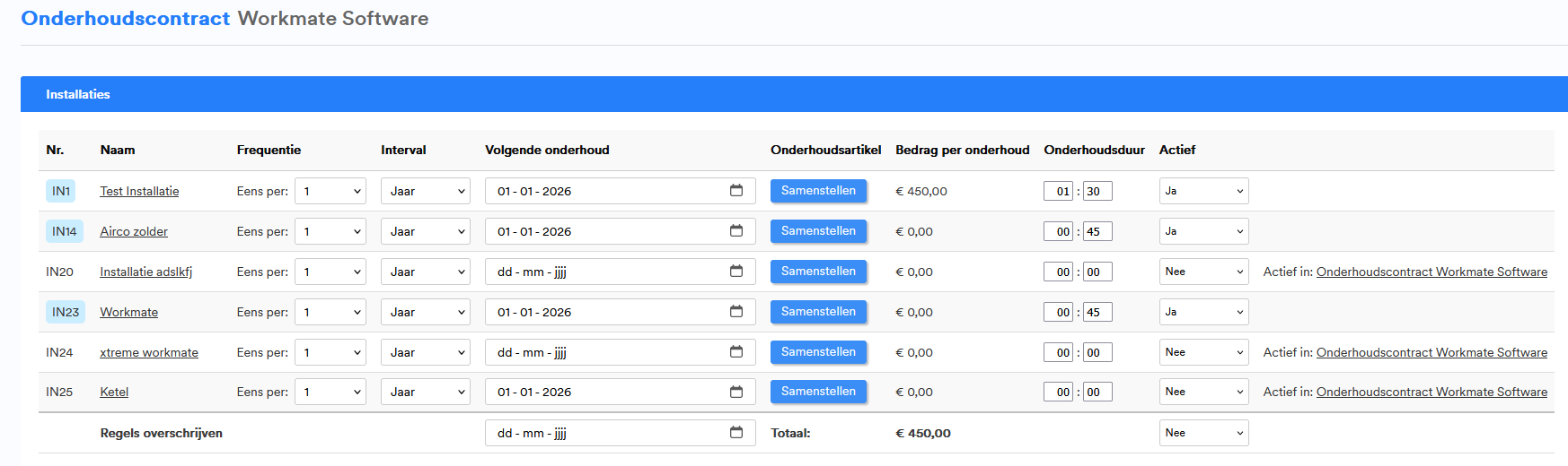 - Zet deze instellingen aan via ‘Instellingen > Installaties > Gebruik verschillende categorieën in onderhoudscontracten: > voeg categorieën toe’